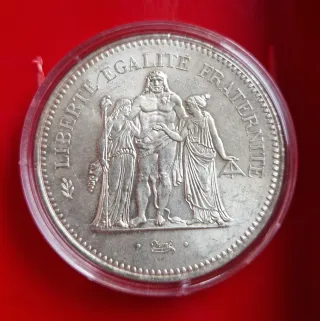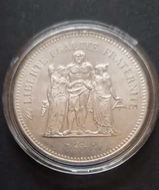 Moneda de plata de 50 francos franceses 1976. - Pais Francia - Material Plata 900 - Pesa 30 Gramos de plata y lleva 27 Gramos de plata Pura. - Ideal Imversion en plata - Diseño de la Libertad, la Igualdad y la Fraternidad.