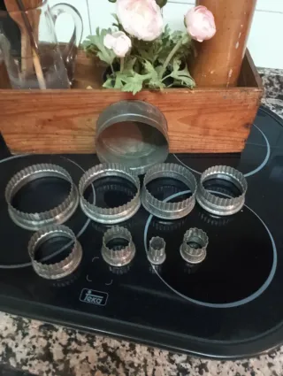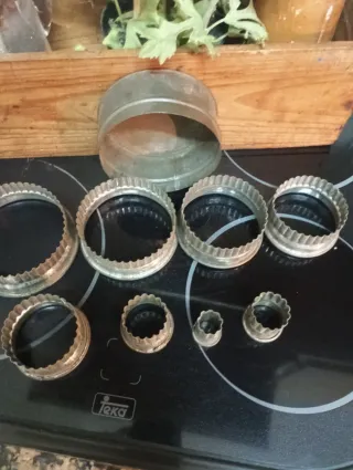 Conjunto de moldes de metal para repostería, con un diseño clásico y un acabado envejecido. - Varios tamaños disponibles. - Borde dentado para cortar. - Material metálico. Ideal decoración rústica o usar como tal