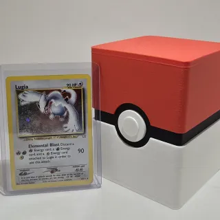 Práctica caja de almacenamiento para tus cartas de juego, con un diseño inspirado en la icónica Pokeball. Impreso en PLA.