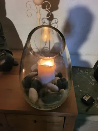 Precioso centro de hierro forjado con un diseño antiguo y decorativo. Su estilo vintage le da un toque especial a cualquier espacio. - Material: Hierro. - Color: verde agua envejecido.