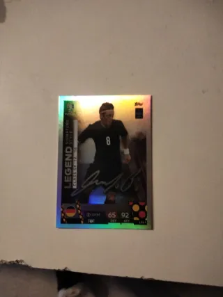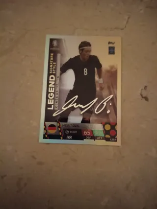 Carta de colección de Mesut Özil, edición LEGEND SIGNATURE STYLE de la Eurocopa. - Jugador: Mesut Özil - Edición: LEGEND SIGNATURE STYLE - Clase: '12, '16 - Estadísticas: 10 OM, DEF 65, ATT 92 - Incluye firma.