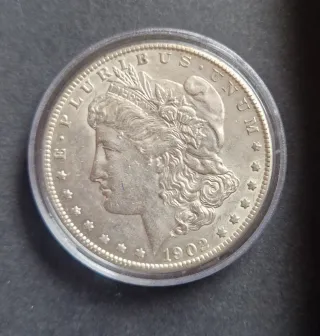 Moneda de plata Morgan del año 1902 Usa - Diseño de Lady Liberty. - Canto con estrellas y leyendas. - Acabado en plata.