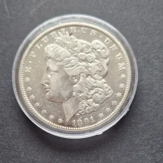 Moneda de plata Morgan de 1 dólar, acuñada en el año 1891. Presenta el busto de Lady Liberty en el anverso. - Material: Plata - Año: 1891 - Tipo: Dólar Morgan