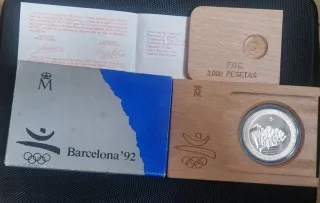 Moneda de plata conmemorativa de los Juegos Olímpicos de Barcelona '92. - Plata de ley. - Diseño con el emblema de Barcelona '92 y los aros olímpicos. - Incluye el escudo de la M coronada.