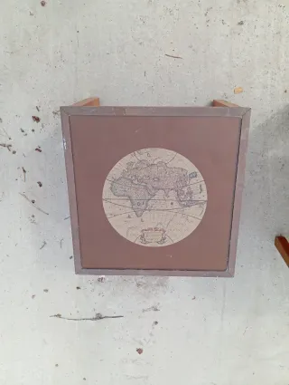 Este es un cuadro decorativo con un mapa antiguo. - Marco de madera. - Representación del mundo.