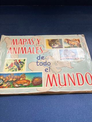 Un libro antiguo de Mapas y Animales de Todo el Mundo. - Ilustraciones de animales y mapas. - Tapa con diseño vintage.