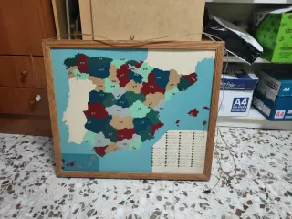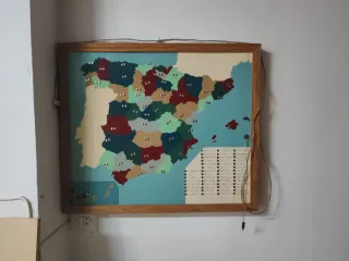 Mapa educativo de España con las provincias marcadas. Ideal para aprender geografía de forma visual. Medidas aproximadas: 75x69 - Diseño vintage. - Marco de madera. - Elaboración artesanal de los años 50.