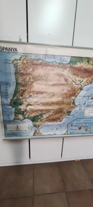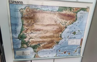 Mapa físico y político de España, ideal para estudiar geografía. Editado por la Generalitat valenciana. 120 x 94 cm - Representación detallada del relieve y las divisiones políticas. Con signos del uso y/o paso del tiempo,se vende el artículo tal y como se muestra en las fotografías .w7