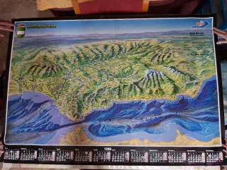 Precioso Mapa detallado de Andalucía y ciudades principales. Incluye un calendario del año 1998. De Seur.