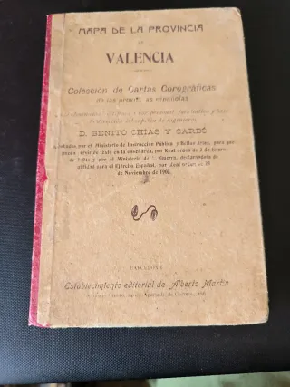 Mapa de la Provincia de Valencia, Colección de Cartas Corográficas de las provincias españolas. - Aprobado por el Ministerio de Instrucción Pública y Bellas Artes. - Declarado de utilidad para el Ejército Español. - Publicado por el Establecimiento editorial de Alberto Martín en Barcelona.