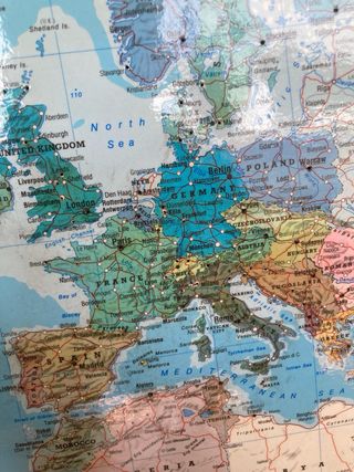 Precioso mapamundi antiguo, enmarcado en madera oscura. Es una pieza única para decorar tu hogar u oficina. - Idioma inglés. - Tamaño 83,5 x 144 cm. - Marco negro de madera. - Perfecto estado de conservación. - Tiene agujeros de chinchetas (2ª foto), pero se pueden volver a clavar sin problemas. Estas vienen incluidas también. Viene acompañado de otro mapa más pequeño de la zona este de Estados Unidos. - Tamaño 74,5 x 82 cm. - Marco negro de madera. - Perfecto estado de conservación. - En inglés también. El precio es negociable.