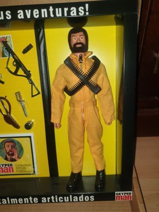 Geyperman moreno con barba con mono y botas. Contiene los siguientes elementos: Cuchillo de trinchera Mapa de misión Funda sobaquera Revólver Lebel Prismáticos Dos cananas de balas Ametralladora Sterling Vasos para vestir la figura Catálogo general 1978, catálogo de puntos y folleto "Cómo vestir a tu Geyper Man". Caja individual expositora a todo color. Edición para coleccionistas limitada a 300 unidades.