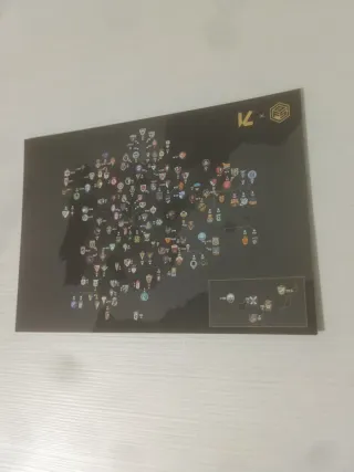 Mapa decorativo de España con escudos de equipos de fútbol. - Diseño en fondo negro. - Incluye un recuadro adicional con más escudos.