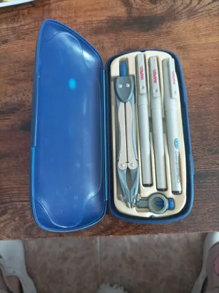 Set de compás Maped con accesorios para dibujo técnico. - Incluye compás principal. - Tres lápices de repuesto. - Adaptador para lápices.
