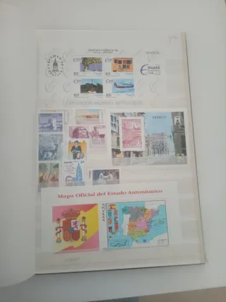 Lote de sellos de España. - Incluye sellos de Aviación y Espacio '96. - Contiene sellos de Exposición Mundial de Filatelia. - Incluye Mapa Oficial del Estado Autonómico con escudo de España y mapa de las comunidades autónomas. Años 96/98 Sin matasellar