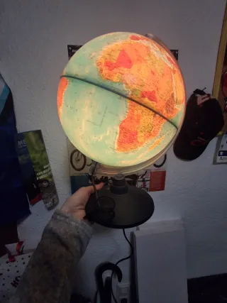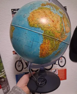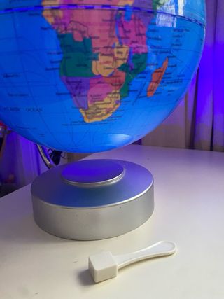 Globo terráqueo con base metálica y soporte. - Incluye cable de alimentación con interruptor. - Mapa político detallado. - Diseño moderno y educativo.