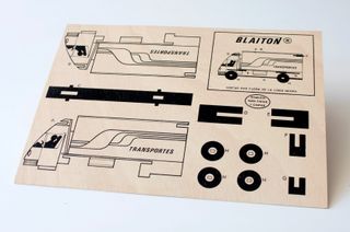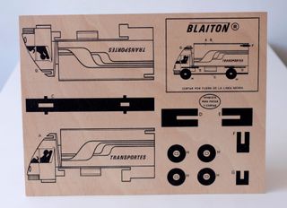 Maqueta vintage de madera para recortar y pintar. Camión Transporte. Marca Blaiton. Mide 40 x 30 cm. Nueva, a estrenar. Recortable de marquetería. Diseño. Vintage. Juguete. Juego. Aviones. Colección. Decoración. Coche. Quality Bananas