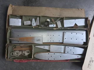 Maqueta de avión de madera de balsa,completísimo no le falta nada,la caja no está perfecta pero el resto perfecto
