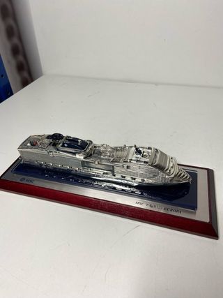 Réplica detallada del crucero MSC World Europa. - Base de exhibición con placa.