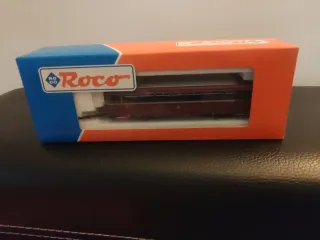 Detallada maqueta de tren de la marca Roco. - Fabricada en Austria. - Modelo de vagón oscuro con detalles en amarillo. - Incluye caja original.