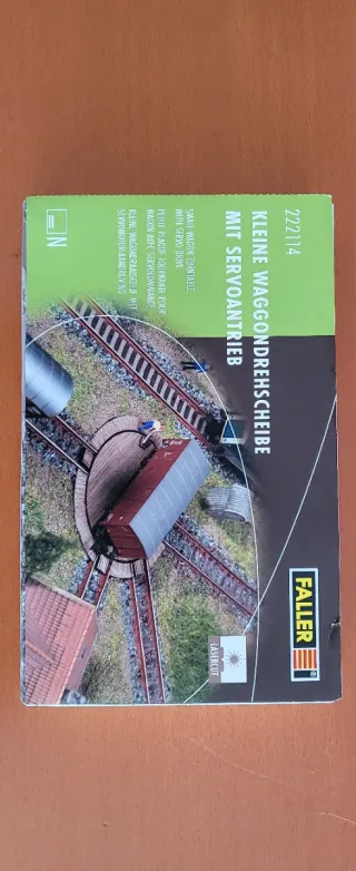 Plataforma giratoria para maquetas de trenes en escala N, con accionamiento por servo. - Modelo: Kleine Wagondrehscheibe mit Servoantrieb. - Marca: Faller. - Escala: N. - Incluye accionamiento por servo.