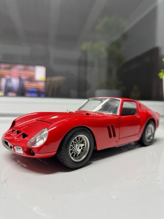Réplica detallada del icónico Ferrari GTO de 1962 en escala 1/18. - Fabricado por Burago. - Escala 1:18. -Apertura de puertas, maletero con rueda de repuesto y capó con motor. -Le falta el faro delantero izquierdo y los focos traseros.