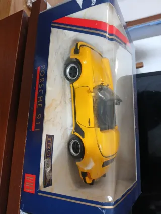 Maqueta Porsche 911 Speedster 1989 en color amarillo, modelo clásico muy representativo de la marca. Coche de colección con gran nivel de detalle (interior, llantas, carrocería). Se vende con su caja original tal como se ve en las fotos. Ideal para coleccionistas de Porsche o de coches a escala. Buen estado general, perfecto para vitrina o colección.