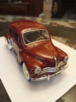 Bonito clásico RENAULT 4CV, en escala 1/17, del fabricante SÓLIDO. En buen estado general. Solo le falta un piquito del paragolpes trasero, que se puede ver en las fotos, pero es pica cosa. Por lo demás, todo correcto. Conserva su rueda de repuesto. Apertura de capó y portón trasero para dejar ver su motor. Ruedas delanteras con giro de dirección. Más modelos a buen precio en mi perfil. Hago lotes y envíos. 583 Coleccionismo coleccionista colección maqueta miniatura coche