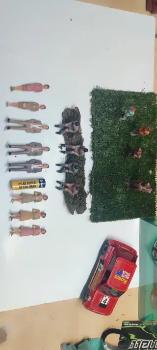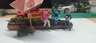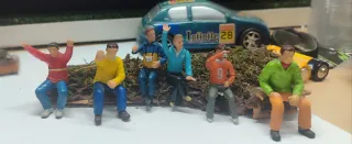 Set de figuras para maquetas de Scalextric en escala 1/32. - Figuras de personajes. - Base para exposición. Han estado en maqueta pueden tener restos adeshivo