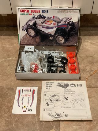 Maqueta a escala 1/32 del Super Buggy N.º 5, modelo Racing Mini 4WD. Incluye motor y se ensambla a presión sin necesidad de pegamento. Motorizado incluye motor, traccion 4x4, misma escala que scalextric 1/32. Nueva en su caja original. - Incluye motor. - Requiere 2 pilas AA (no incluidas). - Ensamblaje a presión, no necesita pegamento.