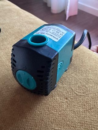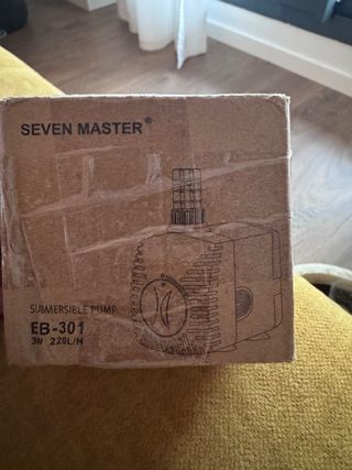 Bomba sumergible de la marca SEVEN MASTER, modelo EB-301. Compacta y eficiente para diversas aplicaciones. - Potencia: 3W - Caudal: Hasta 220 L/H - Salidas para manguera de 8,5mm y 13mm. Ideal para belenes y/o fuentes decorativas de pequeño tamaño. Es muy muy silenciosa y se puede ajustar la velocidad de bombeo. Complemento, fuente, belén, navidad, accesorio, coleccionismo, maqueta, miniaturas.
