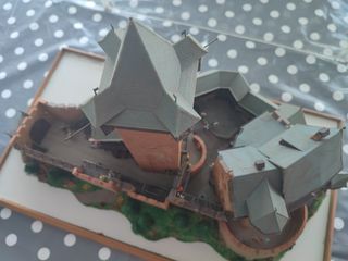Maqueta del Castillo de Falkenstein de Baden-Wurtemberg de Alemania. Metida en urna de metacrilato, bien cuidada, con todo los detalles. Con el cristal mide 54x40x29 CMS. No envío por la delicadeza del producto.
