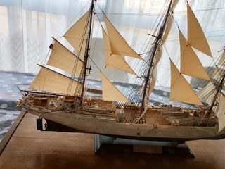 Maqueta del buque escuela de la marina de Alemania Gorch Fock, está metida en urna de cristal cuyas medidas son 65x43x21cms. No hago envío del producto por su delicadeza. Está bien cuidada sin ningún desperfecto