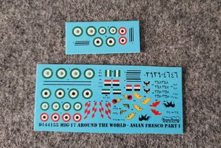 Calcas Model Maker para maquetas de aviones MiG-17 Sirios y egipcios escala 1/144. El set incluye calcas para diferentes versiones del avión, con una gran variedad de diseños. - Son calcas nuevas, sin usar. - Perfectas para añadir detalles a tu maqueta. - El set incluye varias hojas de calcas. - Están en perfecto estado.