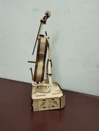 Preciosa maqueta decorativa de un violín, elaborada en madera. - Diseño detallado y artesanal. - Base con adornos musicales.