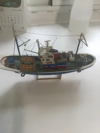 Detallada maqueta de un atunero del Cantábrico, elaborada artesanalmente. - Réplica de embarcación pesquera. - Construcción manual con atención al detalle. Está ago deteriorada pero fácil para arreglar
