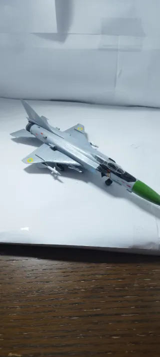 Maqueta del avión de combate Su-15 UM Flagon-G, montada y pintada a mano con gran detalle. - Modelo a escala 1:72 - Pintura gris con detalles en verde y negro. - Incluye misiles en las alas. Se vende por falta de espacio de almacenamiento.