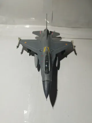 Maqueta detallada del caza F-16 C/D Night Falcon. - Diseño realista. - Colores grises y detalles en amarillo y rojo. Distintivos de la Fuerza Aérea Belga. - Réplica de armamento en las alas. - Fabricante: Italeri - Escala: 1/72
