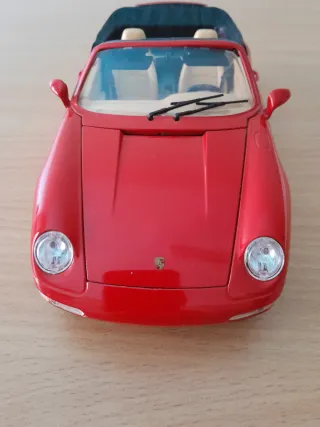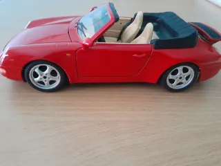 Réplica detallada del Porsche 911 Carrera a escala 1/18. Un modelo clásico para coleccionistas.En buen estado.Precio 15. - Color rojo vibrante. - Diseño convertible con capota. - Interior detallado con asientos y salpicadero.Burago ,Maisto ,Maqueta ,Coleccionismo.