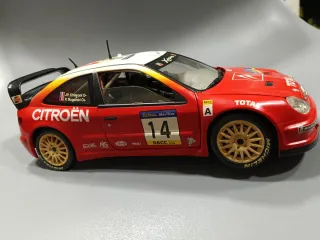 Réplica detallada del Citroen Xsara de rally a escala 1/18. Este modelo presenta un diseño inspirado en los coches de competición en muy buen estado,fabricante Sólido,precio 25€ - Decoración con patrocinadores como Total, Michelin y Movistar. - Número de dorsal 14. - Color rojo característico de los vehículos de rally. Sólido,maqueta,coleccionismo,burago,maisto,ertl