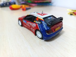 Espectacular coche de colección a escala, réplica del Citroën Xsara WRC que Carlos Sainz pilotó en 2003. - Es una miniatura detallada del icónico coche de rally. - Se encuentra en muy buen estado, ideal para coleccionistas. - Perfecto para añadir a tu colección de coches de carreras.