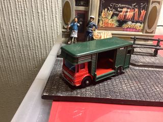 Réplica detallada de un camión transporte de caballos Leyland a escala 1/87. Fabricante LESNEY. Le falta el portón lateral. - Diseño clásico en color rojo y verde. - Ideal para coleccionistas y maquetas.
