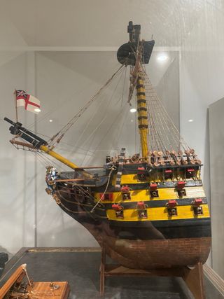 Maqueta a escala del famoso navío HMS Victory, fabricada por Mantua Models. - Detallada sección del casco. - Mástiles y aparejo. - Cañones visibles.