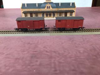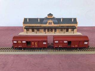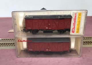 Dos vagones cerrados en escala H0 de Renfe. Electrotren Más cosas de trenes en mi perfil. Hago lotes - Color rojo. - Ideal para coleccionistas y maquetas de tren. No leer Roco fleischmann maqueta
