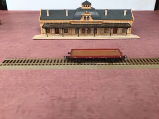 Vagón de mercancías tipo plataforma corto en escala H0, de la marca Renfe. Electrotren Más cosas de trenes en mi perfil, hago lotes - Color marrón y detalles en negro. - Ruedas metálicas. No leer roco fleischmann, maqueta