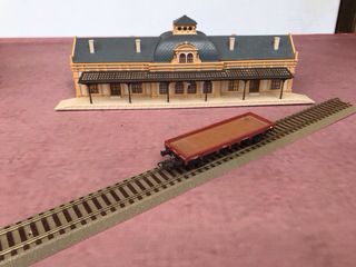 Vagón plataforma en escala H0 de Renfe, listo para transportar carga. Electrotren Más cosas de trenes en mi perfil, hago lotes - Escala H0. - Réplica de vagón Renfe. - Carga de madera incluida. No leer, roco fleischmann maqueta