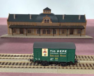 Vagón cerrado H0 de Renfe con la publicidad de Tío Pepe de Gonzalez Byass. Electrotren Más cosas de trenes en mi perfil. Hago lotes No leer roco fleischmann maqueta - Escala H0. - Decoración Tío Pepe. - Marca Renfe.