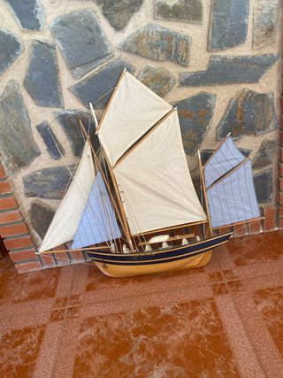 Maqueta de 90 cm de largo desde la punta del botalón hasta el final de la botavara de la vela de popa. 85 cm de alta. Un barco atunero a vela es una embarcación tradicional diseñada específicamente para la pesca del atún, comúnmente utilizada en siglos pasados antes de la llegada de los barcos motorizados. Estos barcos tienen características muy específicas adaptadas tanto para la navegación como para la pesca. Este tipo de embarcación es un símbolo de las antiguas tradiciones pesqueras y, en algunas regiones, se han restaurado como embarcaciones históricas o turísticas.