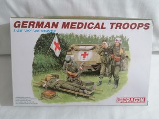 Maqueta de la serie 39-'45 Series de Dragon. - Kit de montaje de German Medical Troops. - Contiene 45 piezas. - Para modelistas a partir de 10 años. - Incluye las figuras de cuatro soldados. Hago envíos por correos o entrega en mano.