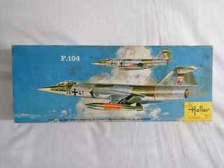Maqueta de avión F-104 de la marca Heller. Esta caja permite construir 5 versiones diferentes del aparato. - Escala 1/72. - Aviones de combate. - Incluye calcomanías. Hago envíos por correos o entrega en mano.